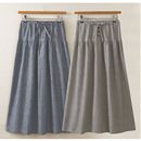 ウエストリブで切り替えた総ゴム使いで楽ちん。ニット裏地付き。選べる2丈展開。あなたにピッタリの丈をお選びください。