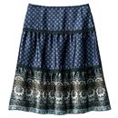 切り替え部分にコットンレースをあしらった3段ティアードスカート。クラシカルなプリントが上品な印象に仕上げてくれる。