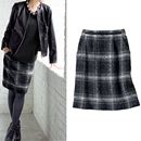 起毛感のある厚手の素材を使ったシャギーチェックのタイトスカート。ネイビーにレッドを効かせたブリティッシュな雰囲気。