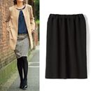 強力ヨコストレッチとウエスト総ゴムではき心地ラクラク。適度にハリのある織物素材がきちんと感を出しながら、のびのびスカートにありがちなムチムチ感を軽減。