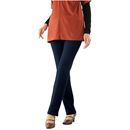 表は柔らかな本格デニム、裏は肌ざわり暖かなフリースの1枚仕立てのパンツ。やや裾広がりの美シルエットで裏フリースでもきれいなラインを描きます。