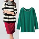 カーデ袖山やプルオーバーの襟ぐりに甘いギャザー!ビジューボタンや上品な狭めの襟ぐりと、旬な可愛さも注入してフルに活躍したい☆コットンタッチの春素材。