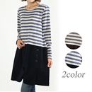 2枚重ねの接結素材が、首元からお尻まわりまでふんわり包み込みます。カフスと裾のピッチ違いのボーダー使いがポイント。