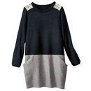 M〜5L展開★チュニック丈だから、体型をカバーして細見せ効果◎スカート部分のシャツコール素材とプルオーバー部分のふわぽか素材が見逃せないポイント。