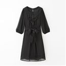 袖の透け感が軽やかな印象を持つブラックシフォンワンピース。リボンベルトは取り外せるので、着こなしやシーンに合わせて調節可能。