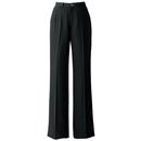 センタープレスですっきりとした美脚シルエットをつくります。ロング丈のジャケットと合わせやすい。ウエストは脇ゴム仕様なので、長時間はいても楽。