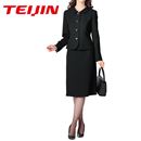 スカートに合わせやすいレギュラー丈のノーカラージャケット。取り外し可能な白と黒のレースの胸当て付きで、インナーを用意する手間もなく、慶弔どちらにも使えるので急な場面でも安心。