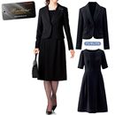 ミセスの体型に合わせて、バストやおなかまわりなど、ゆったりしたパターン設計のブラックフォーマル。ヘチマ衿のジャケットが、ペプラムウエストで腰が高く見え、すらりとした印象を与えてくれます。