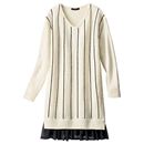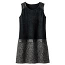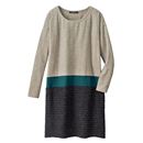 フロントをツイード調のカットソー生地切り替えで上品シックを表現。バックにはファスナー使いでデザイン性と着やすさを両立。