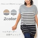 ワイドなシルエットで、レイヤードスタイルにもぴったりな人気のマルチボーダー切替チュニック。身幅もゆったりシルエットで普段使いに大活躍。