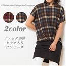 上品な落ち着いた色のカジュアルなチェック切替タック入りワンピース。デコルテがキレイに見えるネックラインと、ゆったりシルエットで重ね着スタイルにも活躍。