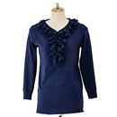 フリルスリーブでふわっとしたAラインのシルエットが女性っぽくやわらかな雰囲気を演出します。レーヨン混の素材なので柔らかい着心地と、ほどよい落ち感があります。