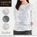 LL〜3L展開★お手ごろ価格でGET!PLAYBOYのバニープリントがポイント♪脇のシャーリングが女性らしさをプラス&ウエスト周りをすっきりした印象に◎どんなボトムにもあわせやすい1枚です。