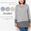 裾と袖から覗くボーダー柄がオシャレに見えるレイヤード風ミックス地プルオーバー。コーデしやすく年齢も問わない定番のボーダー柄との切り替えで、ヒップラインもカバーする長めの丈も魅力。