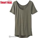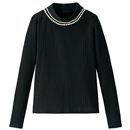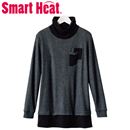 ボーダーで切り替えたレイヤード風。胸元の変形ポケットもポイント。体から発散される水分を吸収し、自ら発熱するハイテク素材だから、とびきりの暖かさ。