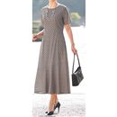 前身頃のビジューが華やかな変わり編みの上身頃に、すっきりギャザーのフレアスカート。表情豊かなワンピはブラックで使いやすく。