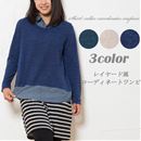 M〜3L展開★まるで3枚の重ね着コーデ♪チュニック丈だから、体型をカバーして細見せ効果◎どんなボトムにもあわせやすい1枚です。