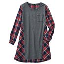 着まわしやすいデザインのチュニック。肩まわりはジャージ素材、身頃はクラッシュベロアで秋らしく。1枚でも重ね着でもOK。