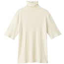 タートルネック5分袖(綿100% シフォン調素材の贅沢カットソー)