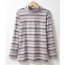 ハイネックで首回りをほどよくカバー。多色使いのボーダーが若々しい印象を与えてくれます。