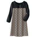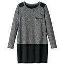 フロントをツイード調のカットソー生地切り替えで上品シックを表現。バックにはファスナー使いでデザイン性と着やすさを両立。