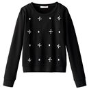 襟元と袖口にちりばめられたラインストーンがとてもゴージャスな1枚。シャーリング入りのタートルネックがフェミニンな印象を与えてくれます。