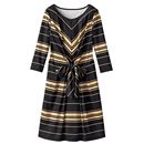 起毛感のあるニットソー素材を使った、華やかなマルチボーダーのチュニックワンピ。袖口&裾がゴム入りでほんのり丸みもプラス。