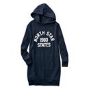 フロントにネイビーの起毛レースを重ねた甘辛ミックスのトレーナー風ワンピース。後ろはグレーの無地だから、すっきりとした印象で着こなせる。