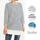 M〜5L展開★チュニック丈だから、体型をカバーして細見せ効果◎重ね着風なのでコーディネートらくちん完成◎脇のスリットと裾野レース使いが見逃せないポイント♪