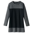 フロントのブラック×グレーの配色がモードなIラインチュニック。後ろはグレーのワントーンでクールすぎずソフトな印象に。