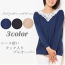 胸元のレース使いが着るだけで女性らしさを与えてくれるタック入りプルオーバー。ナチュラルになりすぎないキレイめのレース使いと、ゆったりシルエットでデニムやスカートなどどんなボトムスにもマッチします。