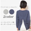 透かしレースが女性らしく上品な裾レース切り替えボーダープルオーバー。程よく開いたネックラインと、レースの透け感が特徴。