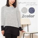 裾と袖から覗くボーダー柄がオシャレに見えるレイヤード風ミックス地プルオーバー。コーデしやすく年齢も問わない定番のボーダー柄との切り替えで、ヒップラインもカバーする長めの丈も魅力。