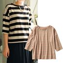 裾と袖から覗くボーダー柄がオシャレに見えるレイヤード風ミックス地プルオーバー。コーデしやすく年齢も問わない定番のボーダー柄との切り替えで、ヒップラインもカバーする長めの丈も魅力。