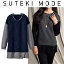編地の違うニットを重ねたようなフェイクレイヤードチュニック。編地切替で、こだわりのレイヤードを演出。