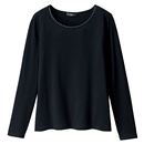 トレンドのワイドピッチボーダーにも注目!!裏側を軽く起毛した天竺素材で、柔らかな肌触りと暖かさ。衿ぐりの後ろは、サテンテープパイピングを施し、しっかり補強しています。