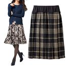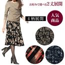 フレアが美しく揺れる12枚はぎパターン。プリント柄と無地のように見えるエンボスプリント柄をご用意。表からはわかりにくい、ウエスト総ゴム仕様で、のびのびらくらくな着用感。
