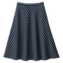 ストライプはグレーとホワイトの上品な2色使い。程良い落ち感のフレア、シャープな山形切り替えで、トライしたいミモレ丈をバランスよく。