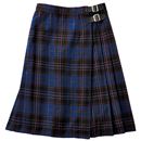 シックなチェック柄が英国気分のスカート。両サイドから後ろ身頃にプリーツを入れたラップスカートは、トラッドなウエストのベルト使いですっきりと。