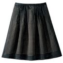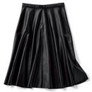 リアルレザーのような上質な合皮を使ったミディ丈のフレアスカート。コーデに投入すれば一気におしゃれ上級者に。