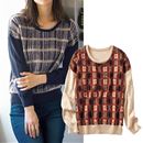 エスニックな幾何学模様をジャカード編みしたインパクト抜群のニット。厚手でボリューム感があり、あたたかさも着映え力もたっぷり。