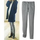 裏がうっすら起毛していて、ほっこりした風合いのスキニ―パンツ。脚をきれいに見せるほっそりシルエットながら、あたたかく、はき心地も楽ちん。