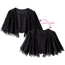 シフォンとレース、リバーシブル仕様で二通りの表情が楽しめるボレロ。肩や腕をカバーしてエレガントに装えます。