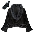 天然羽根のマラボーをあしらったベロア素材の上品なボレロ。スプリングホックでとじられ、リボンを外して着てもOK。