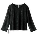 身頃はカットソー生地で着心地よくキレイに着こなせます。立体感のあるレースでエレガントに。