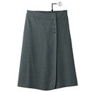 おなかまわりをすっきりと抑えたひざ下丈の台形スカート。ウエストの動きで食い込まないよう、ウエスト両脇にゴムを挟み込みました。