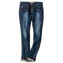 脚長効果でバランスよく見えるブーツカットジーンズ。配色ステッチやウエスト別布使いなど、おしゃれに見せるこだわりが満載。