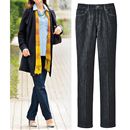 表は柔らかな本格デニム、裏は肌ざわり暖かなフリースの1枚仕立てのパンツ。やや裾広がりの美シルエットで裏フリースでもきれいなラインを描きます。