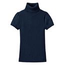 上品ネイビーの半袖タートルニットは、秋イチから活躍。身頃はフィットするリブ、袖は愛らしいパフスリーブ。