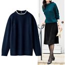 立体的な編み地変化ですっきり見えするニット。衿を外せばカジュアルな着こなしにも。